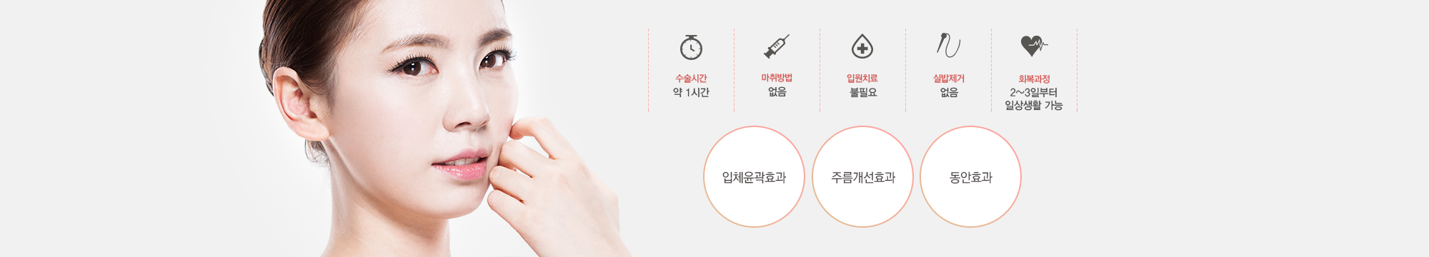허벅지, 복부와 같이 지방이 다량 축적된 부위에서 불필요한 지방을 채취하여 원심분리기를 통해 순수지방만을 추출한 뒤,얼굴의 볼륨을 필요로 하는 특정 부위에 추출된 순수지방의 적당량을 주입해 얼굴의 윤곽을 매끄럽게 만들어주는 시술입니다.