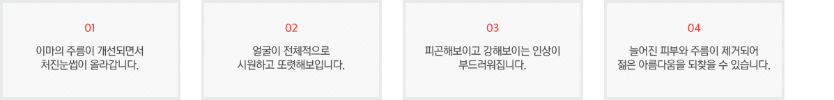 흉터 걱정없는 최소절개로 빠른 회복이 가능하며얼굴전체 주름과 얼굴탄력을 개선할 수 있습니다.