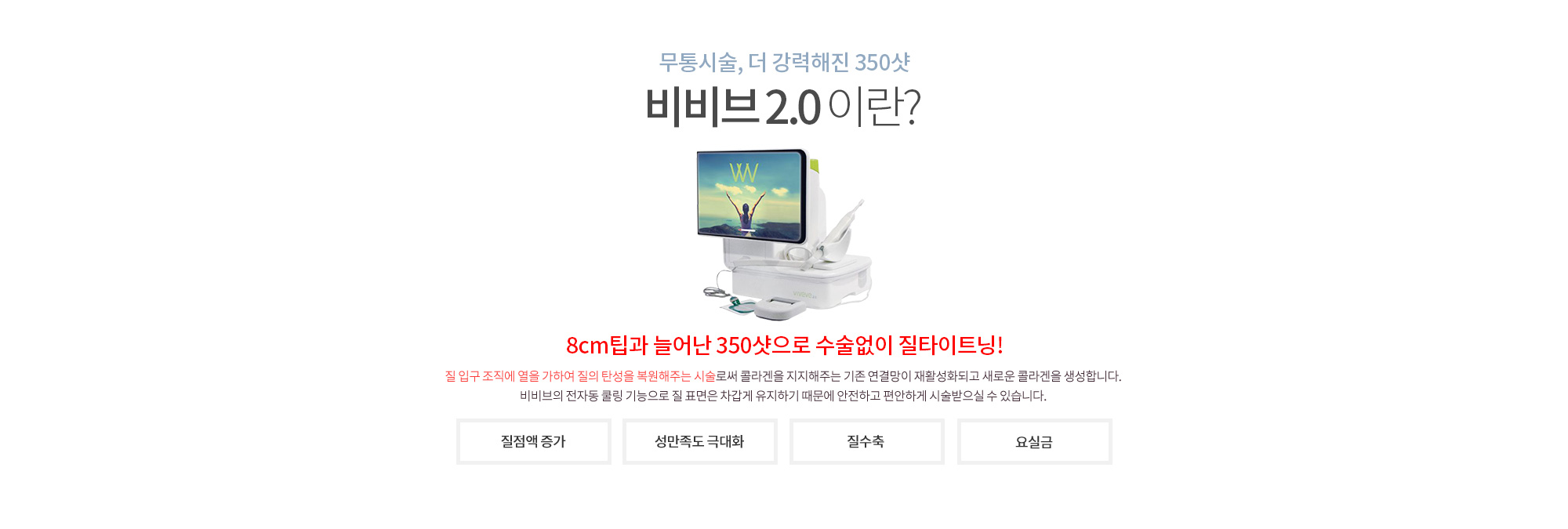 미국FDA, 유럽CE, 한국식약처KFDA의 허가를 받아 여성에게 안전한 비비브 질타이트닝입니다.